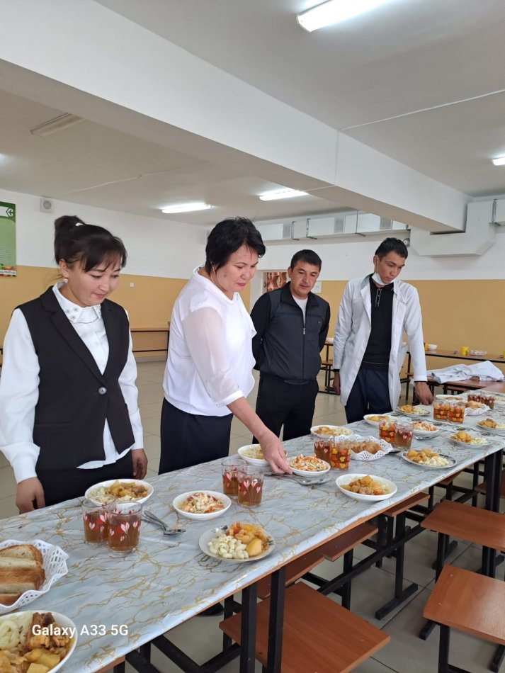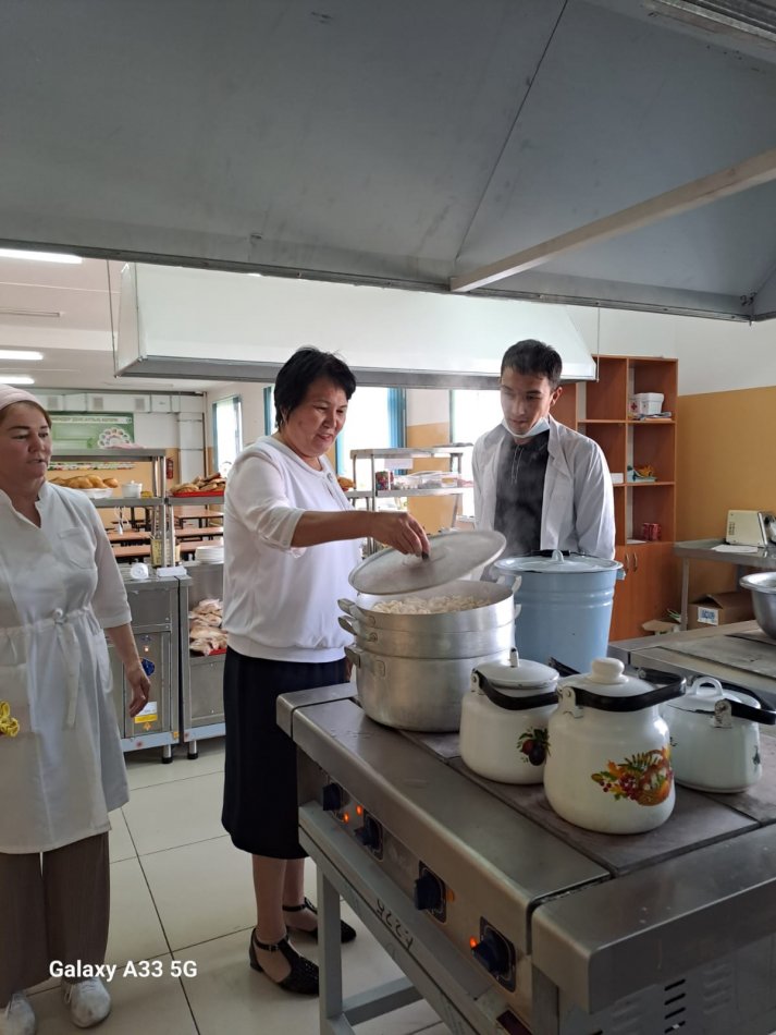 Шымкент қаласы білім басқармасына қарасты №134 жалпы орта білім беретін мектебінде балаларға берілетін ыстық тамақ жұмыстары жүйелі түрде жүргізілуде. Күнделікті мектеп әкімшілігі мен медағасы асханаға жеткізілетін тамақ өнімдерінің сапасын тағамдардың дайындалу техналогиясына, дайын тағамдардың сақталу мерзімдерін үнемі тексеріп отырады.