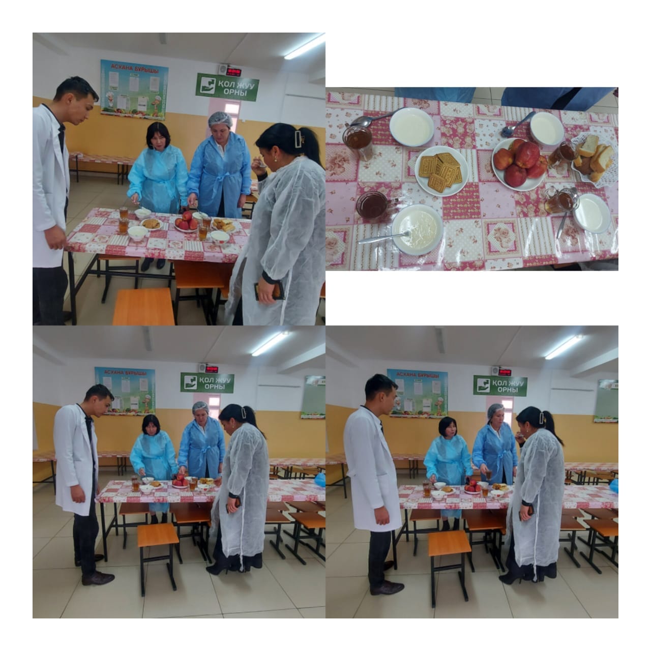 Асханада гигиеналық талаптарға сай және керек-жарағы жеткілікті. Асханадағы бір мезгілдік тамақ ас мәзірі мектеп директорының мөрімен бекітілген. Ыстық тамақпен қамтылған балалардың күнделікті асханада тамақпен қамтылуын мектеп әкімшілігі тарапынан қадағалануда. Мектеп медбикесі асханадағы ас блогының тазалығын, гигиеналық талаптарға сай жұмыс атқаруын қадағалауда. Оқушылардың ыстық тамаққа бару кестесі жасалынған. Ең бастысы, тағам құрамында құнарлы дәрумендердің бай әрі пайдалы өнімдердің көбірек болуы қатаң қадағаланады. Оқушылардың күнделікті ыстық тамаққа келуі мектеп әкімшілігі, әлеуметтік педагог тарапынан бақылануда.