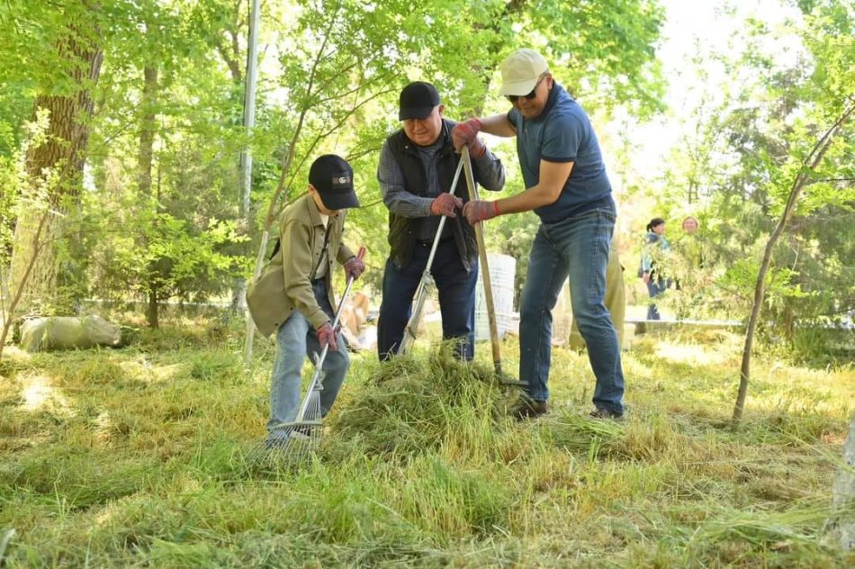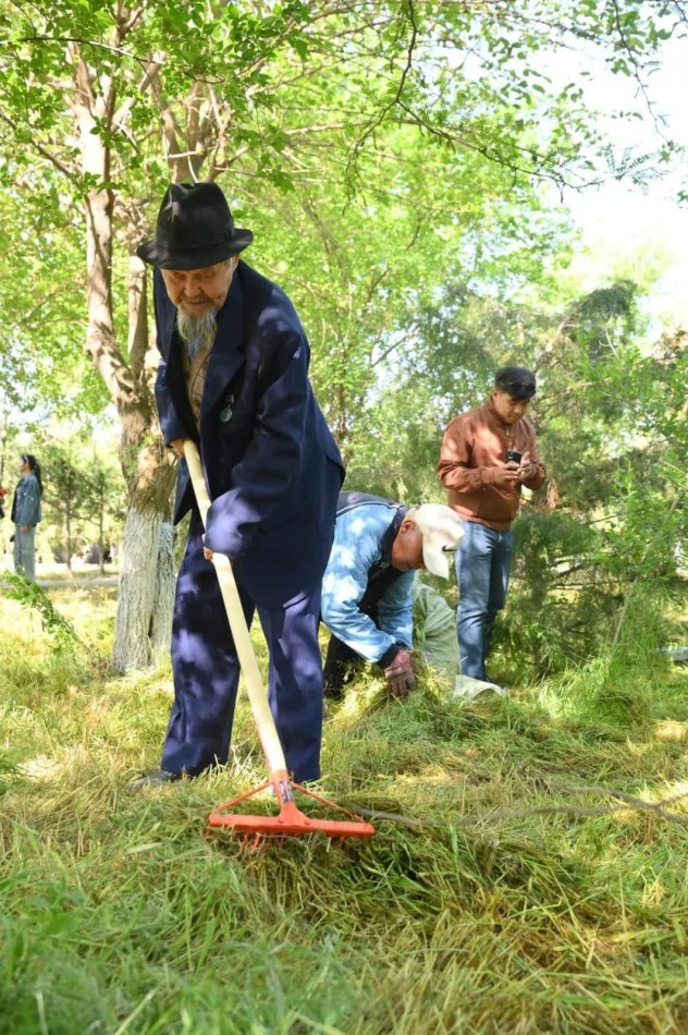 - «Таза Қазақстан» акциясы аясында Шымкентте көптеген іс-шаралар ұйымдастырылуда. Бүгін «Өнегелі ұрпақ» апталығына орай немерелерімізбен бірге саябаққа келіп, тазалық жұмыстарына қатысып жатырмыз. Өсіп келе жатқан балаларымызға, жастарға өнеге үлгі болсын деп атсалысып жатырмыз. Ал жастарымыз үлкендерге, қарияларға, ардагерлерге көмек көрсетіп, игі істермен айналысуда. Осыған үлкен алғысымды білдіремін, - деді О.Рахманбердиев.