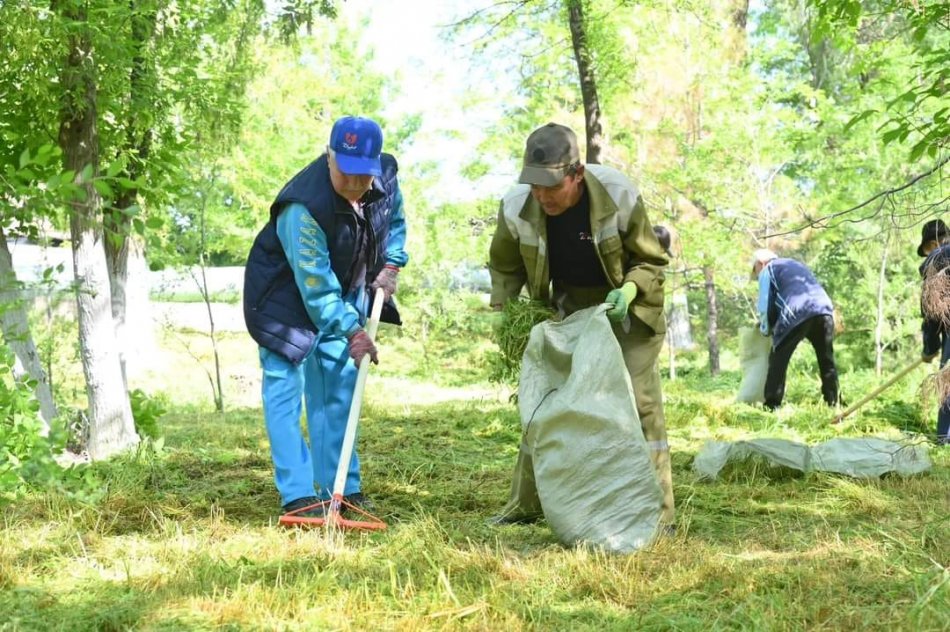 Жалпы «Өнегелі ұрпақ» апталығы аясында Шымкентте қариялар мен ардагерлер үйін тазалау, шөптерді ору, қоқыстарды шығару, ағаштарды әктеу жұмыстары жүргізіліп, құрмет көрсетілуде.